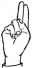 На ћирилици написано КОНСТАНТИН ПЕРИЧЕВИЋ састоји се из 19 слова [?]. Исписано ћириличном једноручном азбуком за глувонеме: